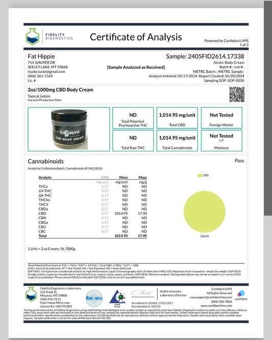 CBD Body Cream 2oz/1000mg