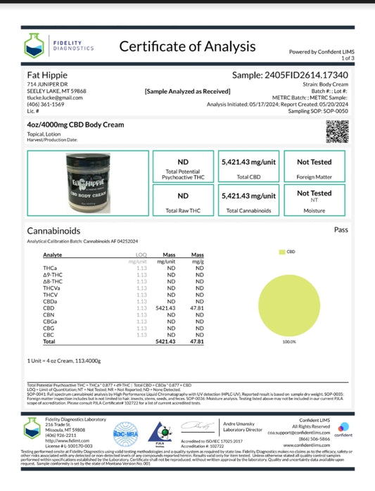 CBD Body Cream 4oz/4000mg